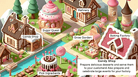 The interactive map is ready! Feel free to explore the game areas. Candy shop Prepare delicious desserts and serve them to your customers! Also prepare and celebrate large events for your factory. Gro...